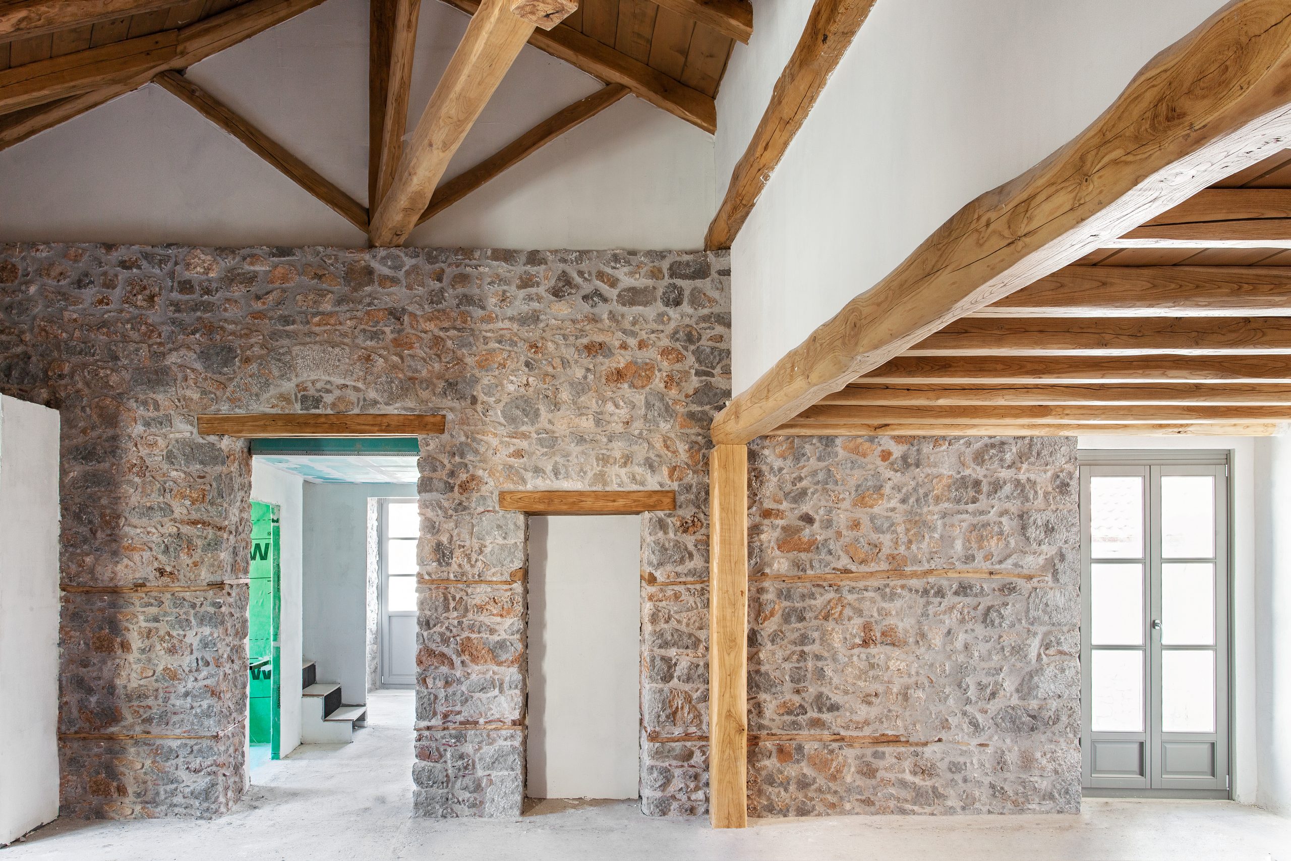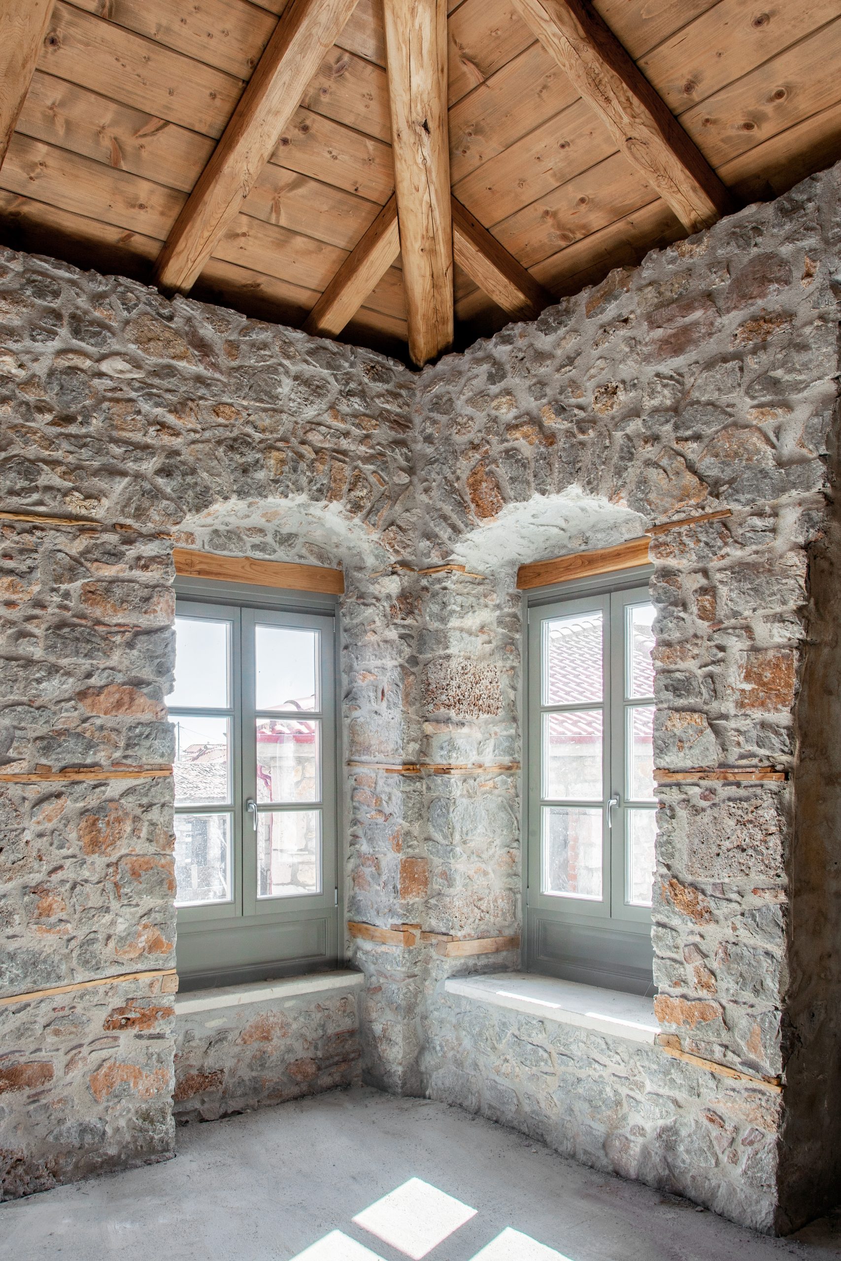 The nearly 200-year-old building, located in the heart of the historic village of Arachova, had suffered significant deterioration due to various factors. These included extensive loss of structural integrity in the solid load-bearing stone walls, partial collapse of the wooden roof, and severe corrosion of the timber beams supporting the floors.